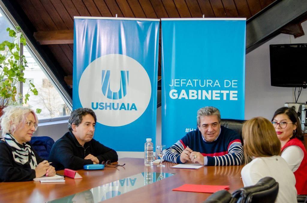El jefe de Gabinete de la Municipalidad de Ushuaia, Omar Becerra, junto al secretario de Malvinas, Daniel Arias, y la subsecretaria de Vinculación Institucional, María José Calderón, se reunieron con la coordinadora territorial de la Cruz Roja Argentina Filial Ushuaia, Karen Vorja, y con la coordinadora del Área de Voluntariado de la entidad, Mariela García.