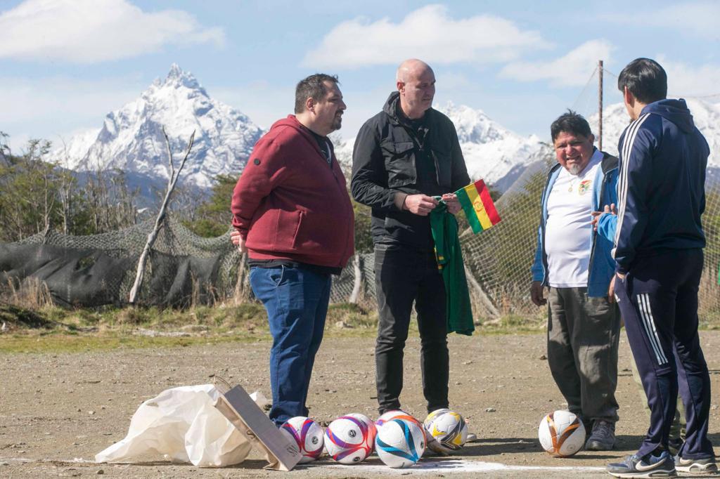 El presidente del Instituto Municipal de Deportes de Ushuaia, Guillermo Navarro, recorrió junto al subsecretario de Comunicación Pública municipal y concejal electo Nicolás Pelloli, y a integrantes del Centro de Residentes Bolivianos, el predio deportivo La Bombonerita.